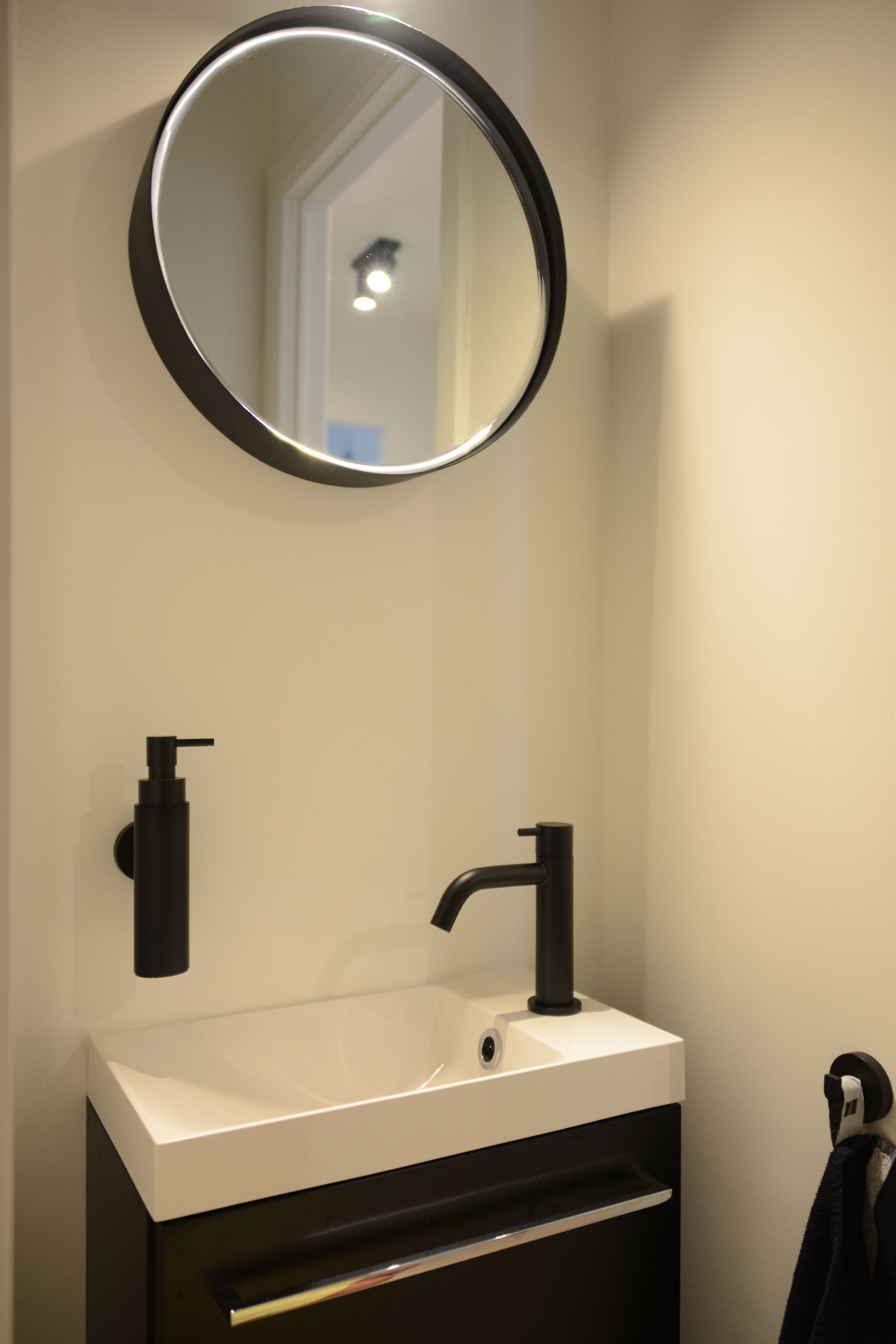 - Gastentoilet: met kastje, handenwasser, en zwarte accessoires. Schilderij van Edith Verwimp van Start To Art.