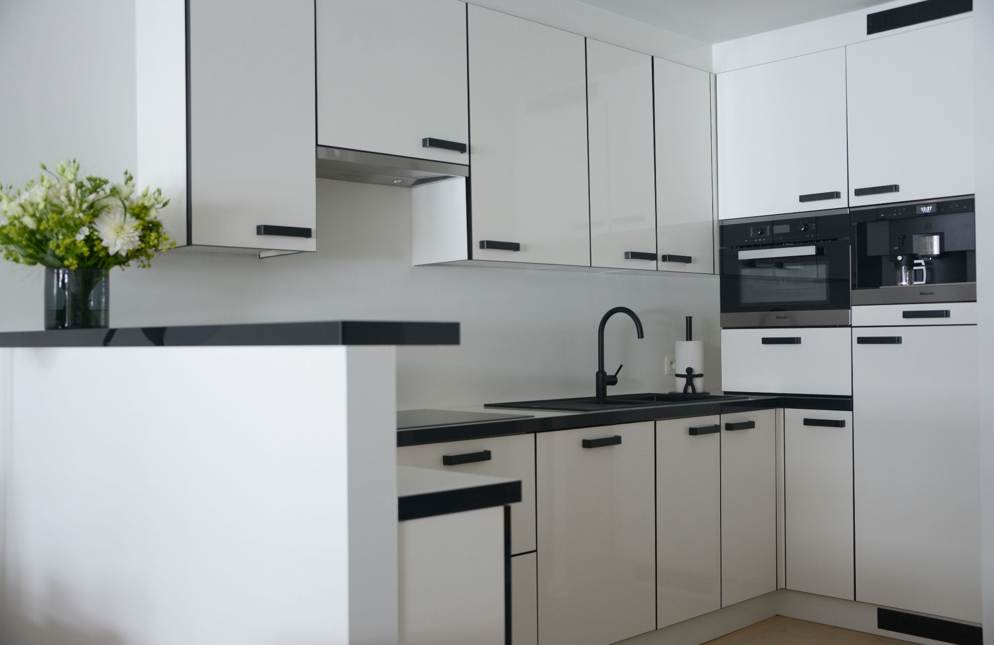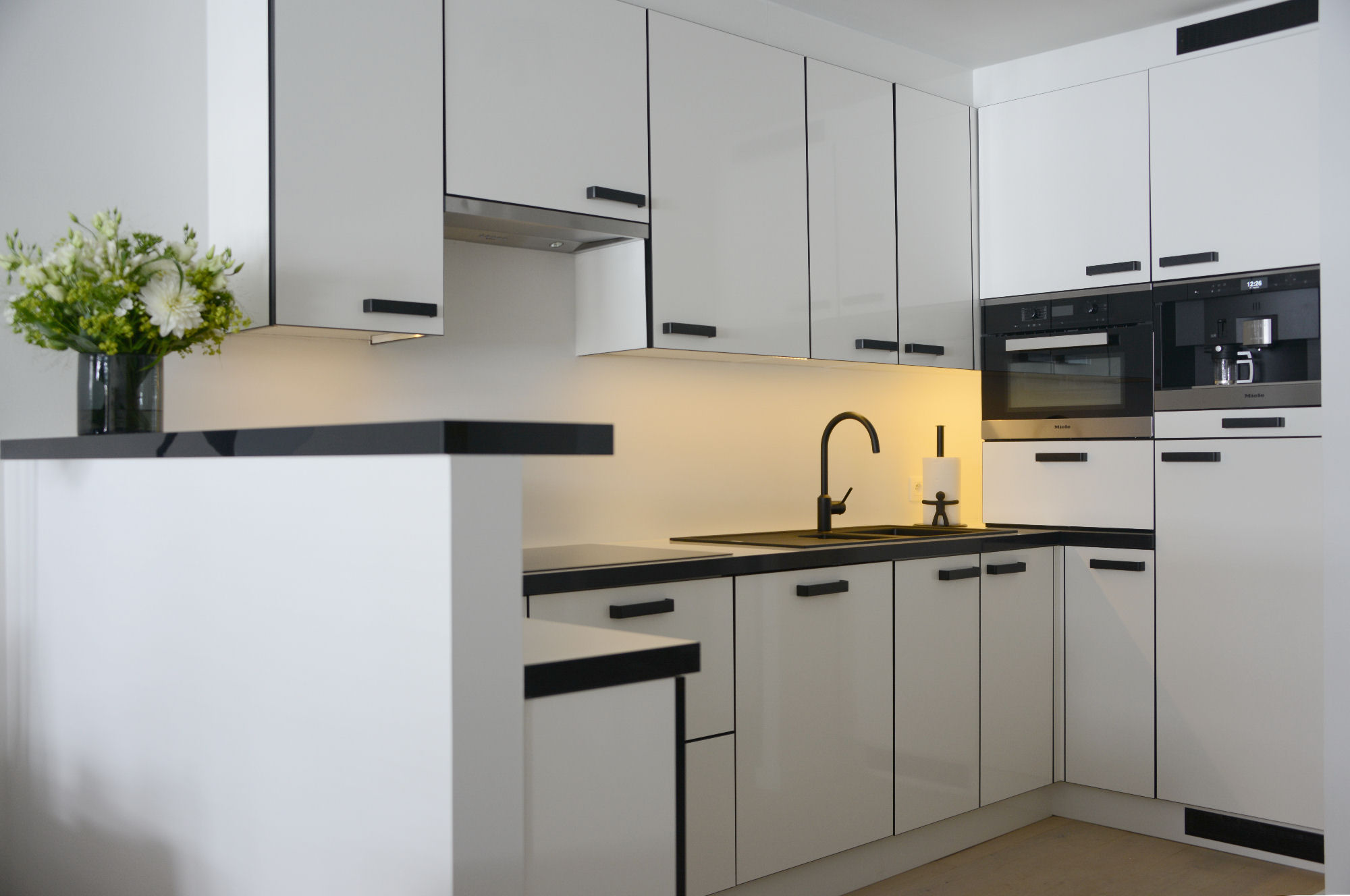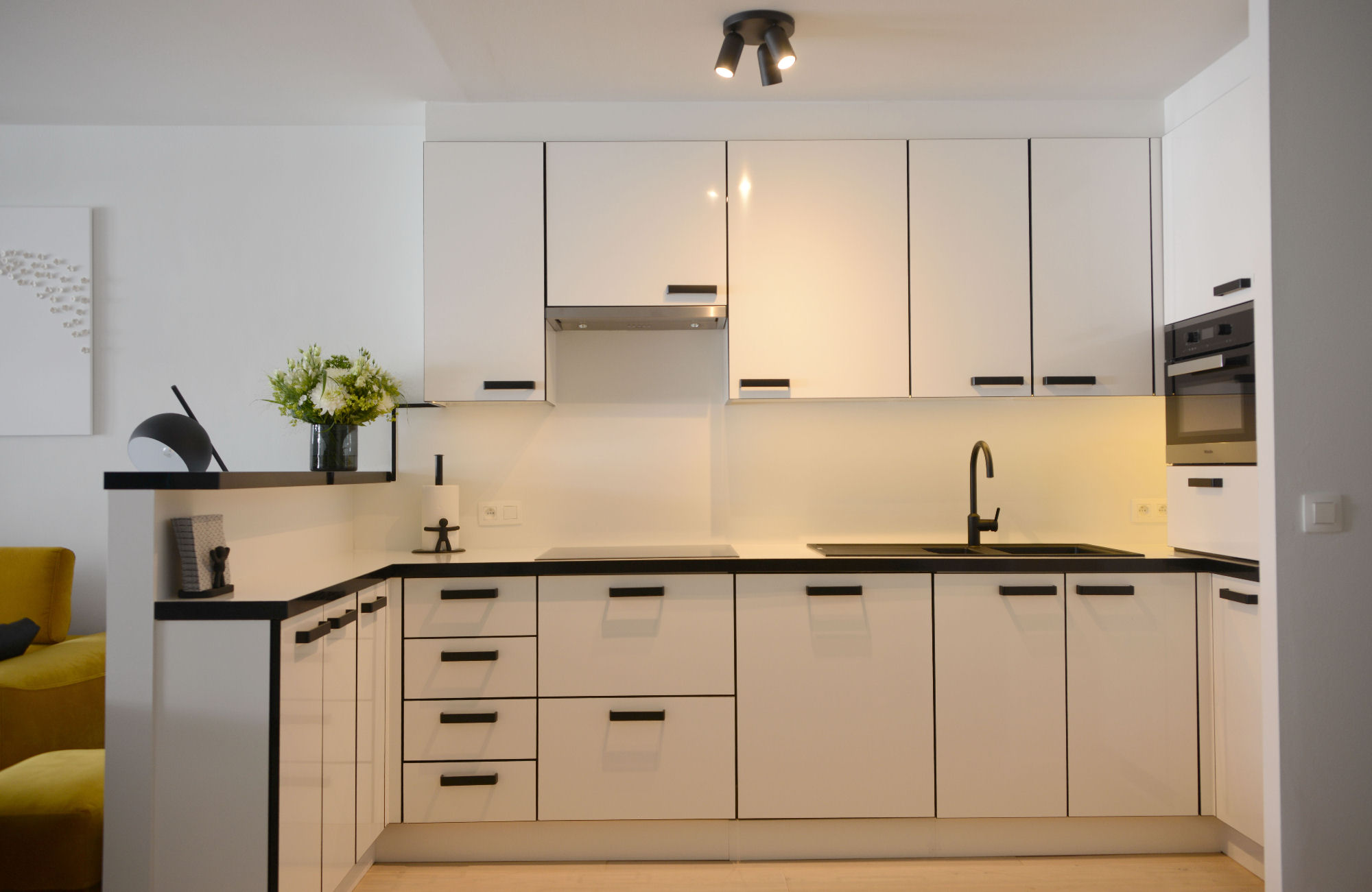 - Uitgevoerd in wit hoogglans met zwarte trekkers en zwarte hoogglans randen.