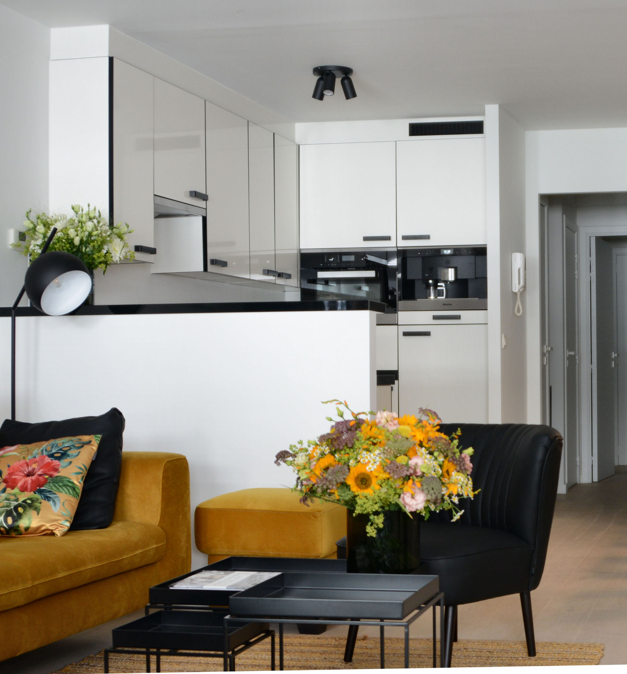 - De gebruikte materialen sluiten perfect aan bij de living.