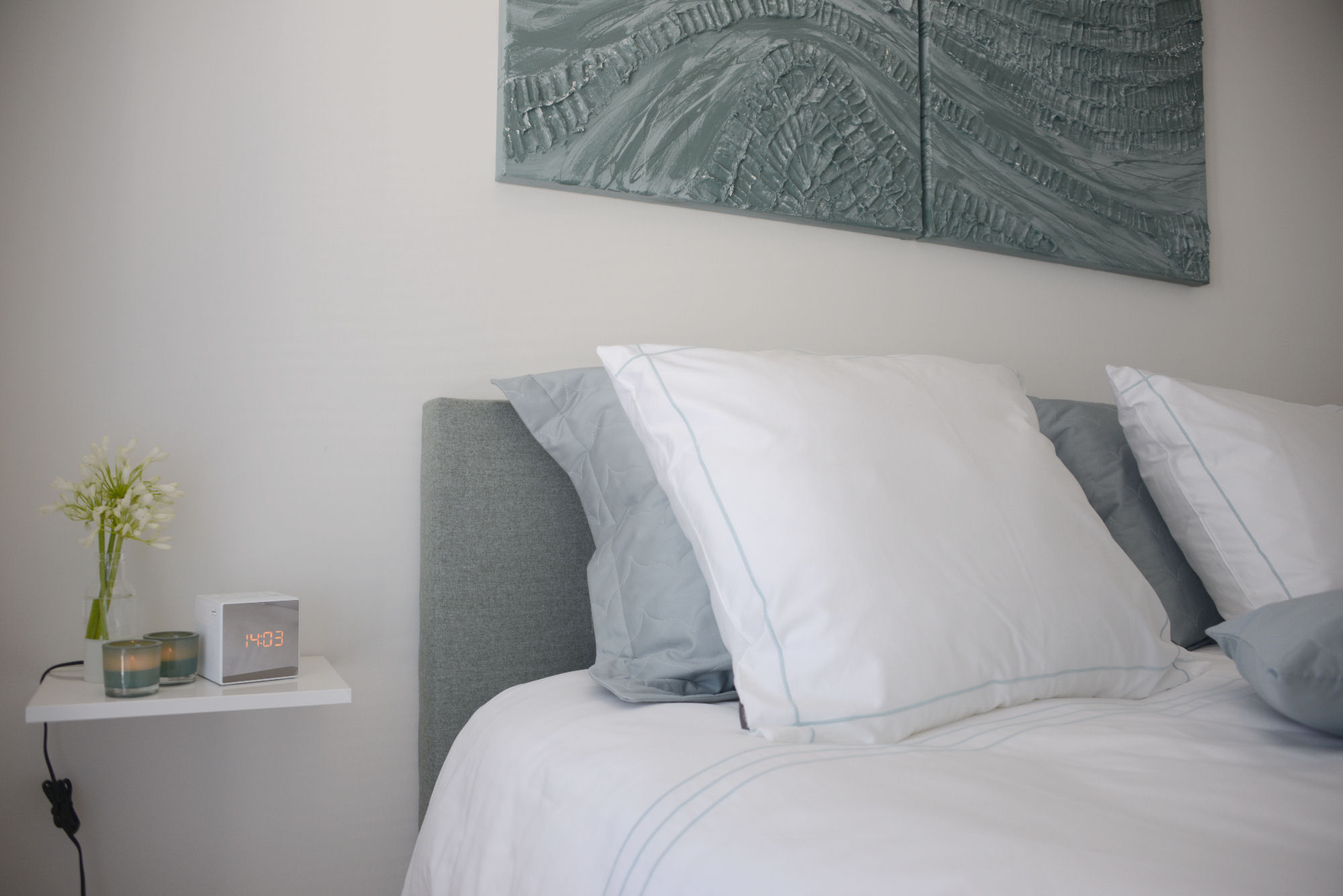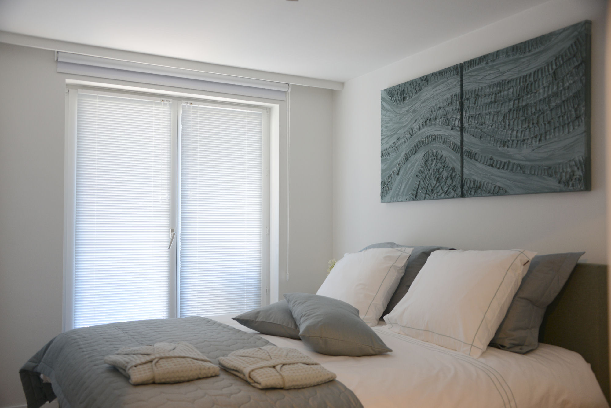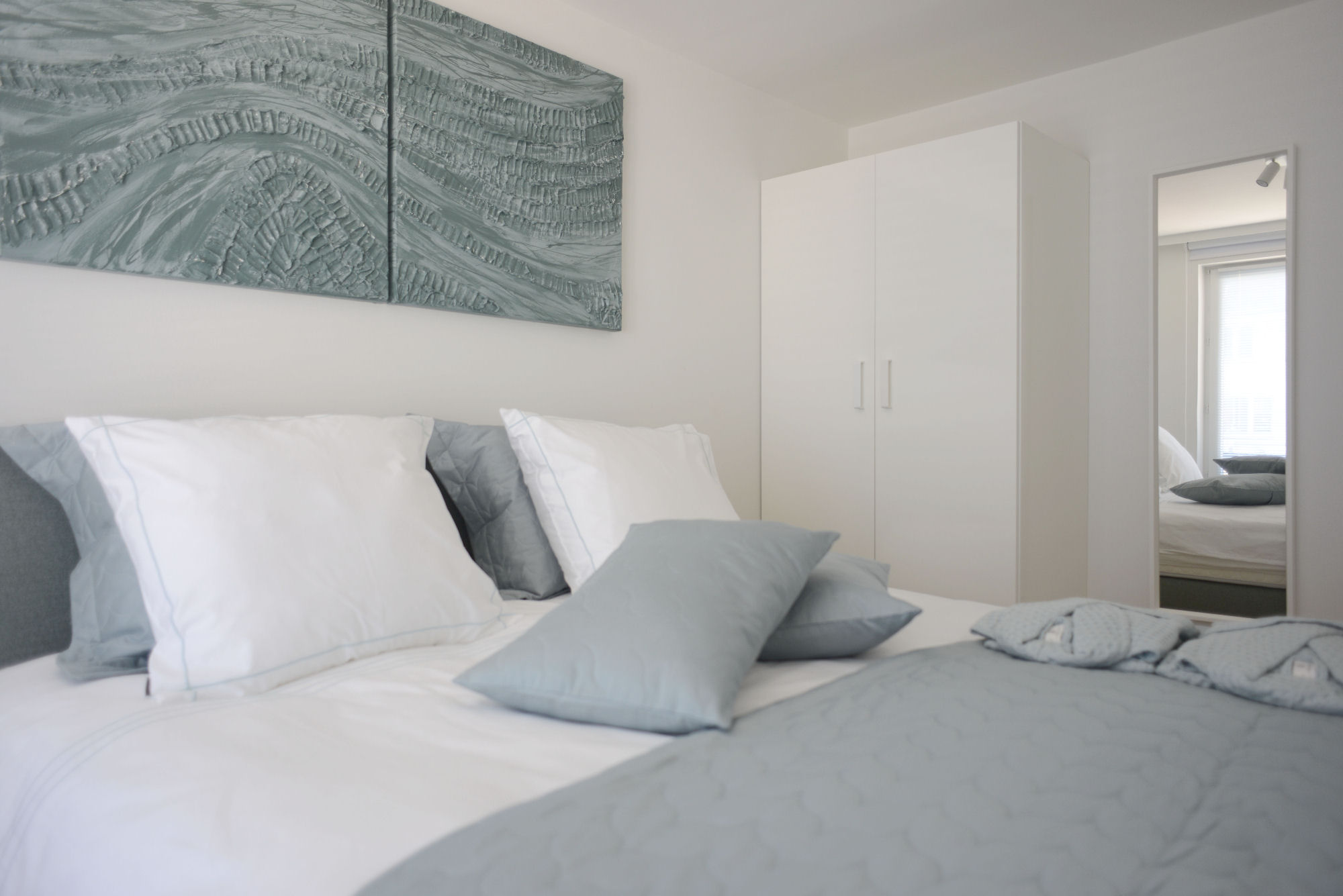 - De gebruikte kleuren en hoogwaardige materialen van de slaapkamer sluiten naadloos aan bij badkamer 1.